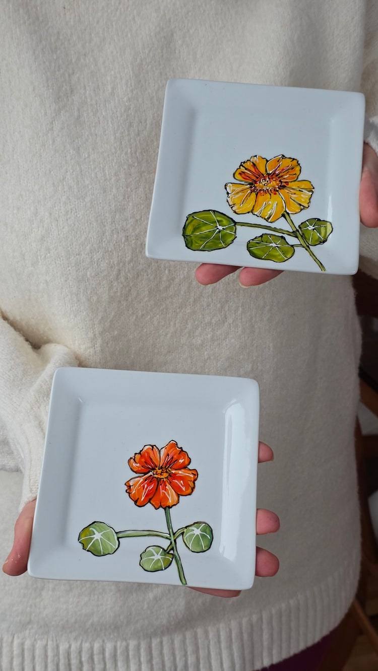Cette mini assiette en porcelaine est peinte à la main. C’est avec joie que je vous la propose pour des petites bouchées, olives, noix.