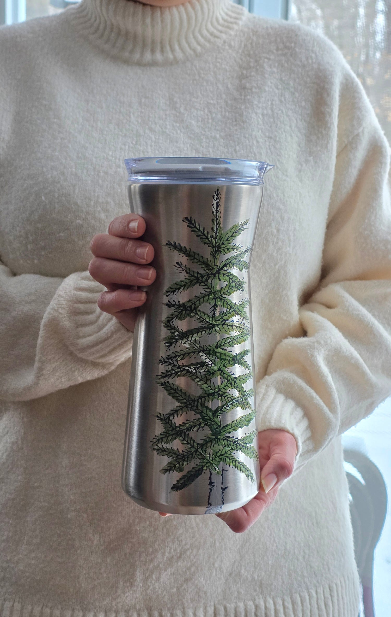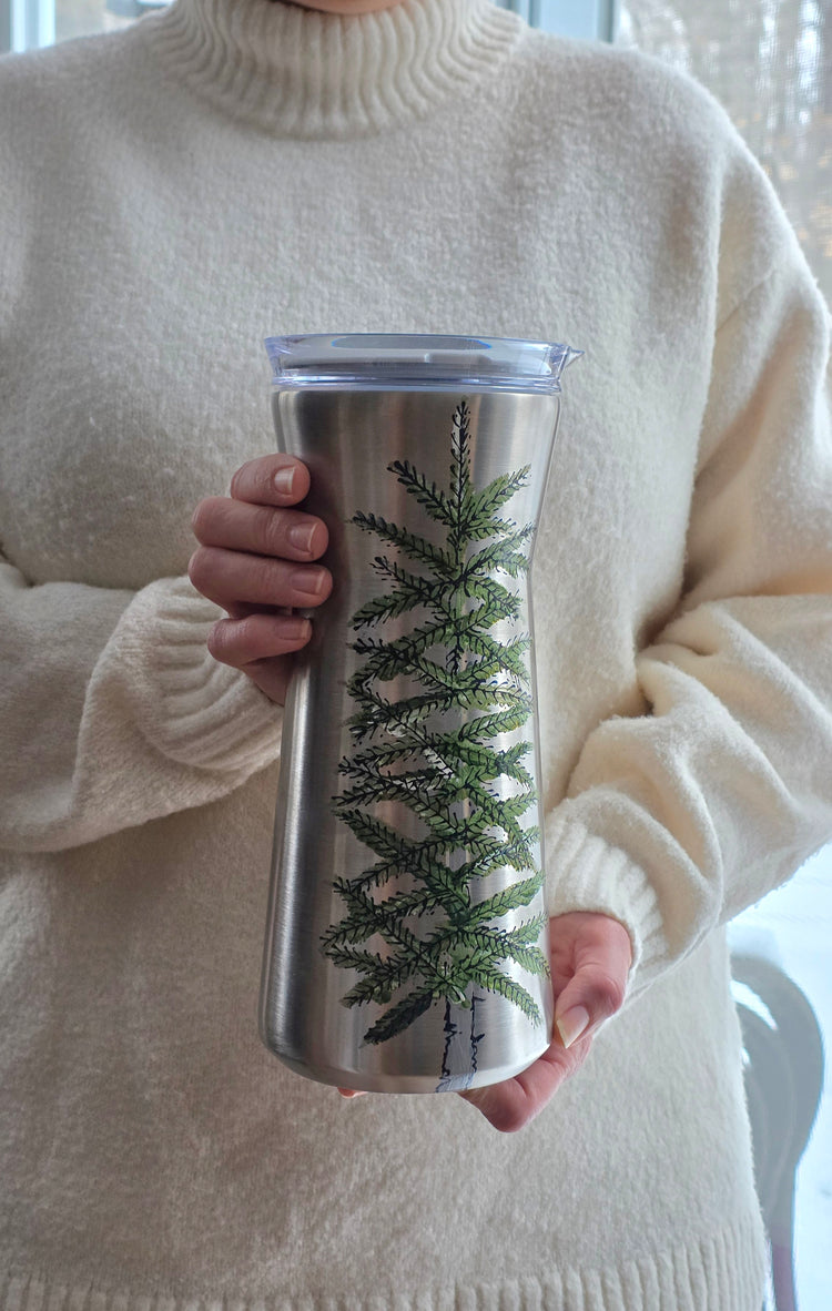 Idée cadeau superbe carafe en acier couleur argent, design boréal peint à la main avec couvercle dévissable.