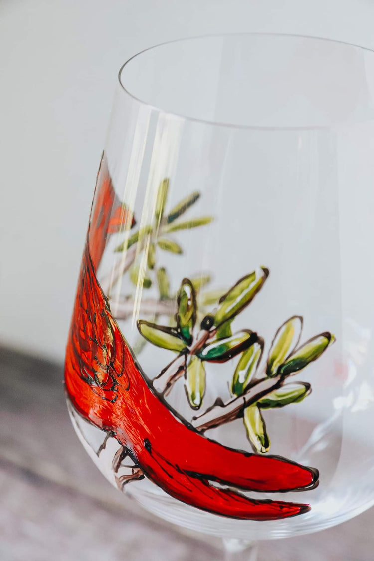 Ce verre, peint à la main de au design d'un cardinal coloré, est un format idéal. Parfait aussi pour le smoothie, le jus ou le vin.