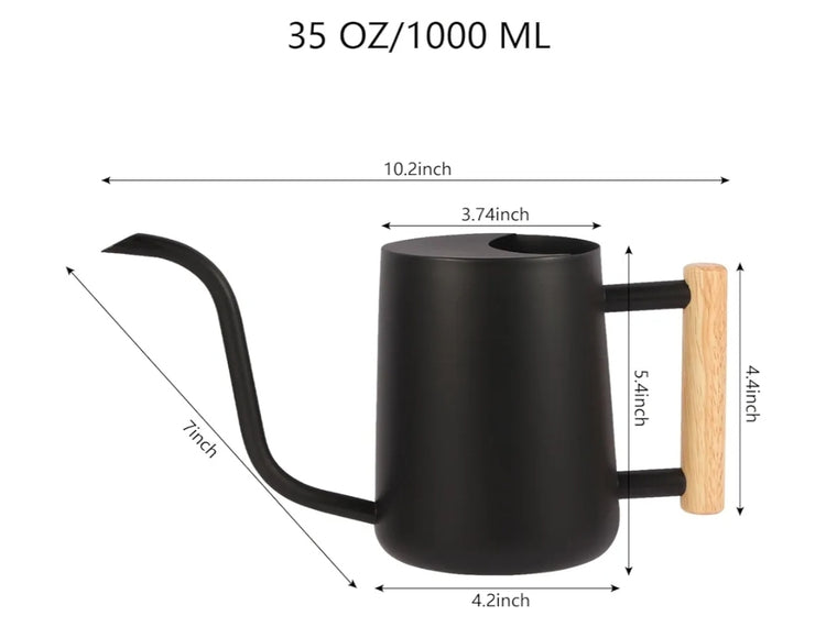 The long gooseneck spout provides a controlled flow when watering houseplants.