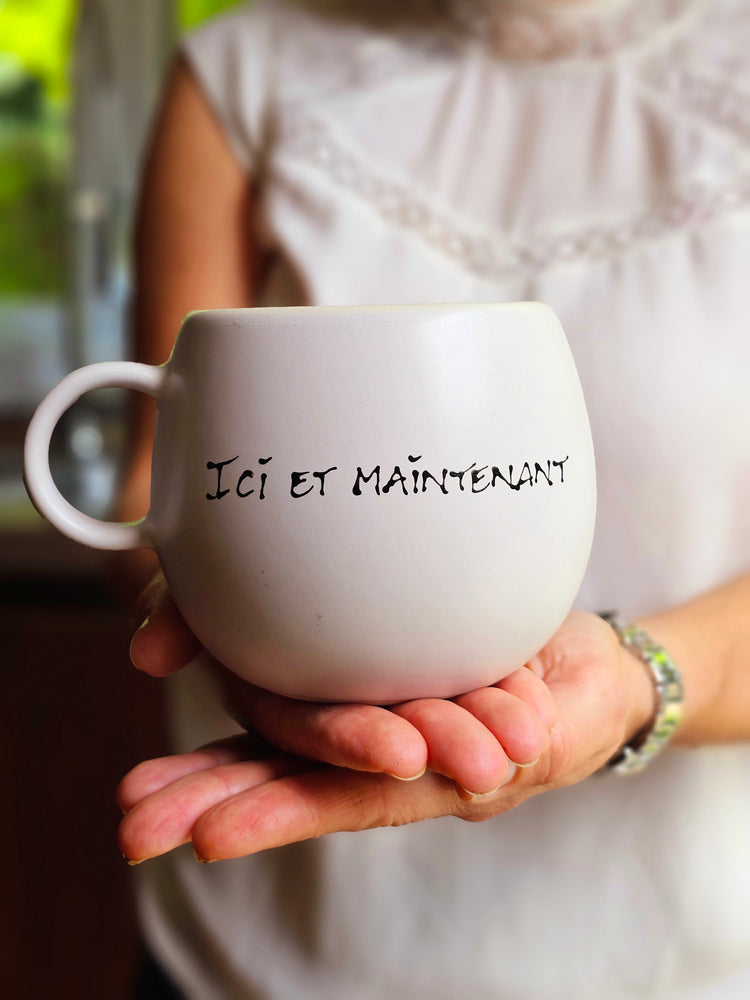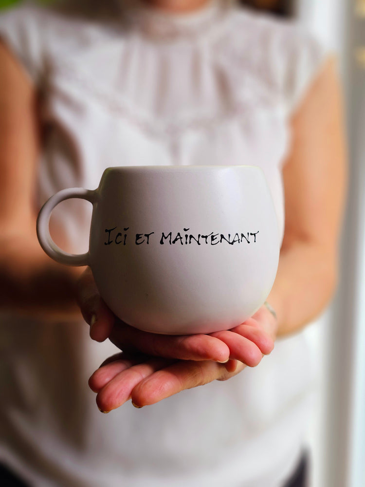 Discover the perfect mug to enjoy your comforting beverage. This mug is made of off-white stoneware.