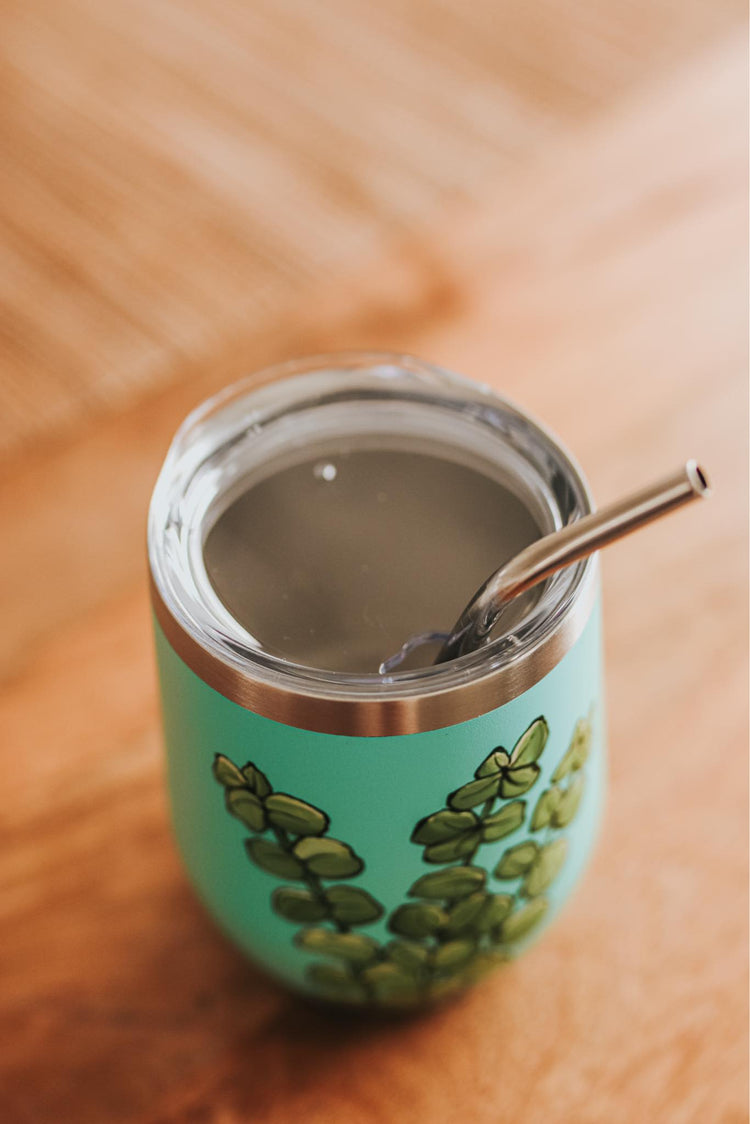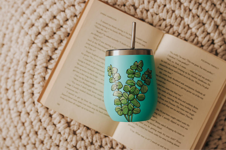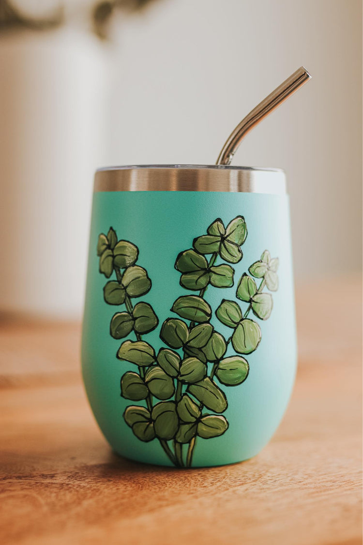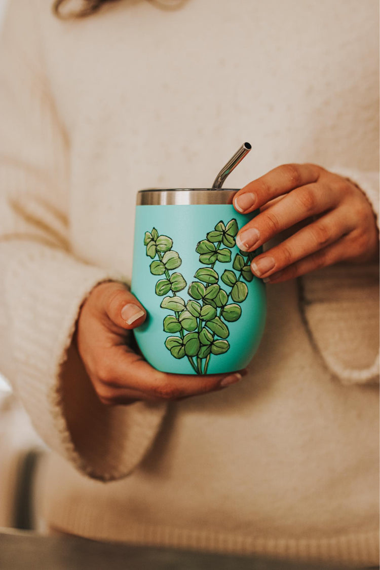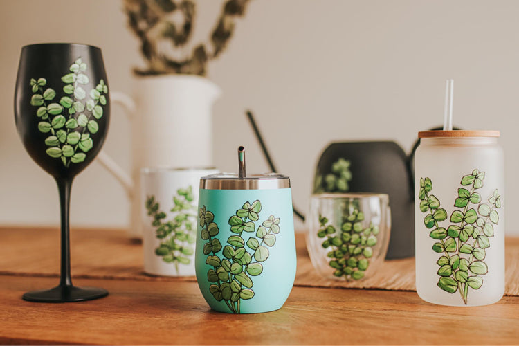 With a design inspired by the eucalyptus plant collection and a stainless steel finish, this hand-painted glass is a unique gift idea that will make an impact.