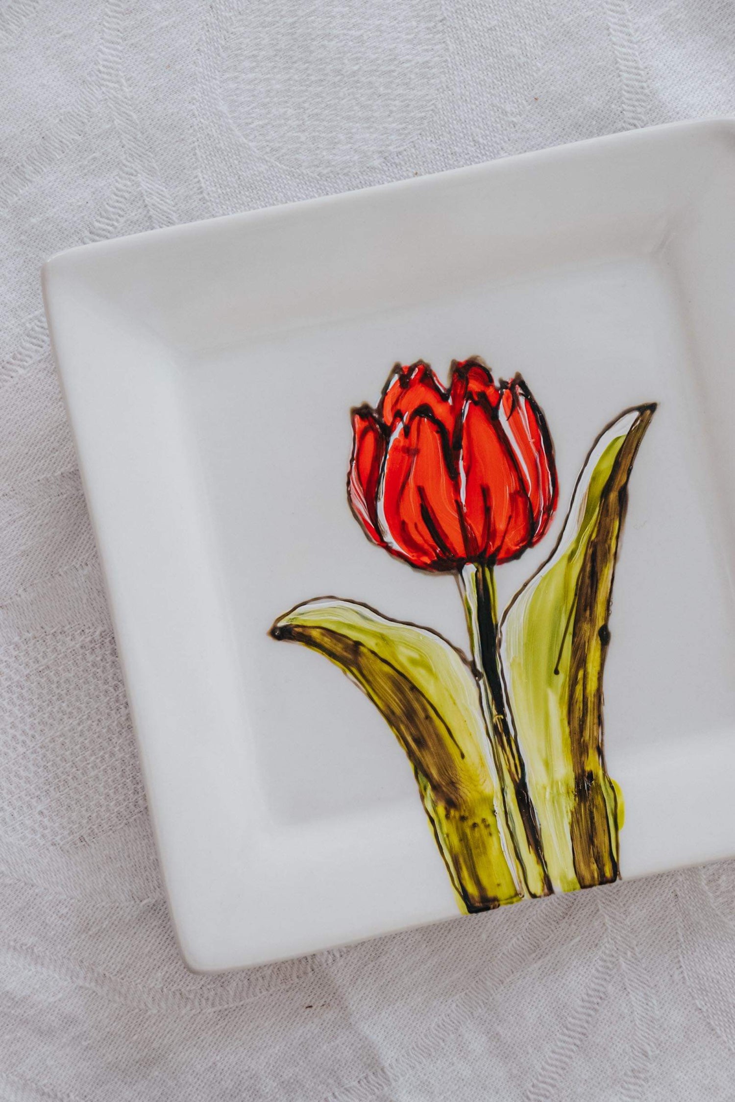 This mini porcelain plate is hand painted. It is with joy that I propose it to you for small bites, olives, nuts.