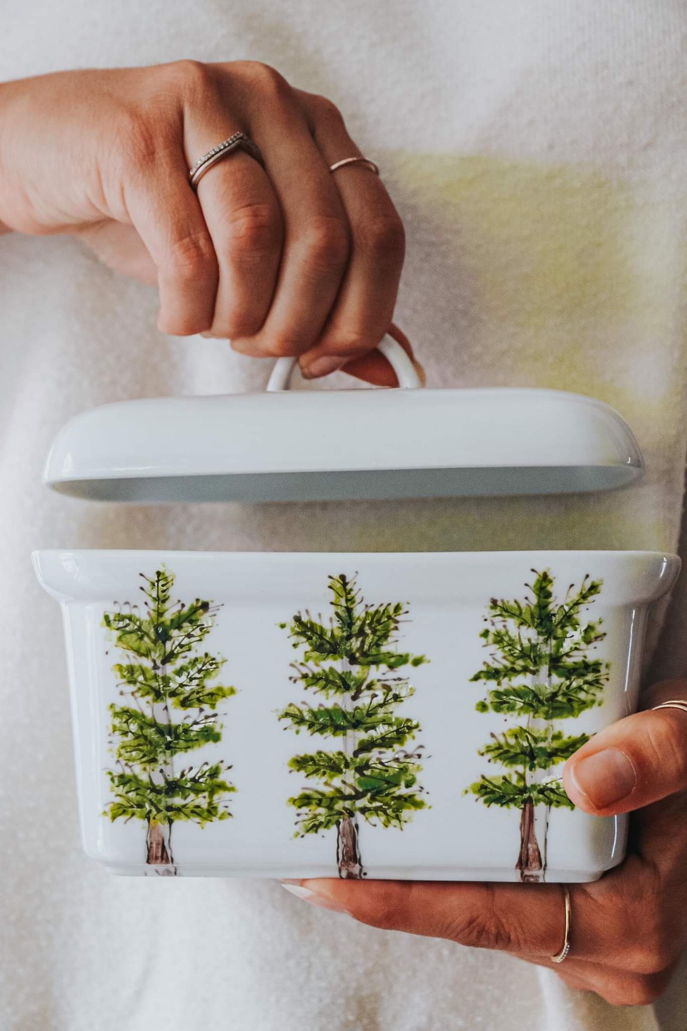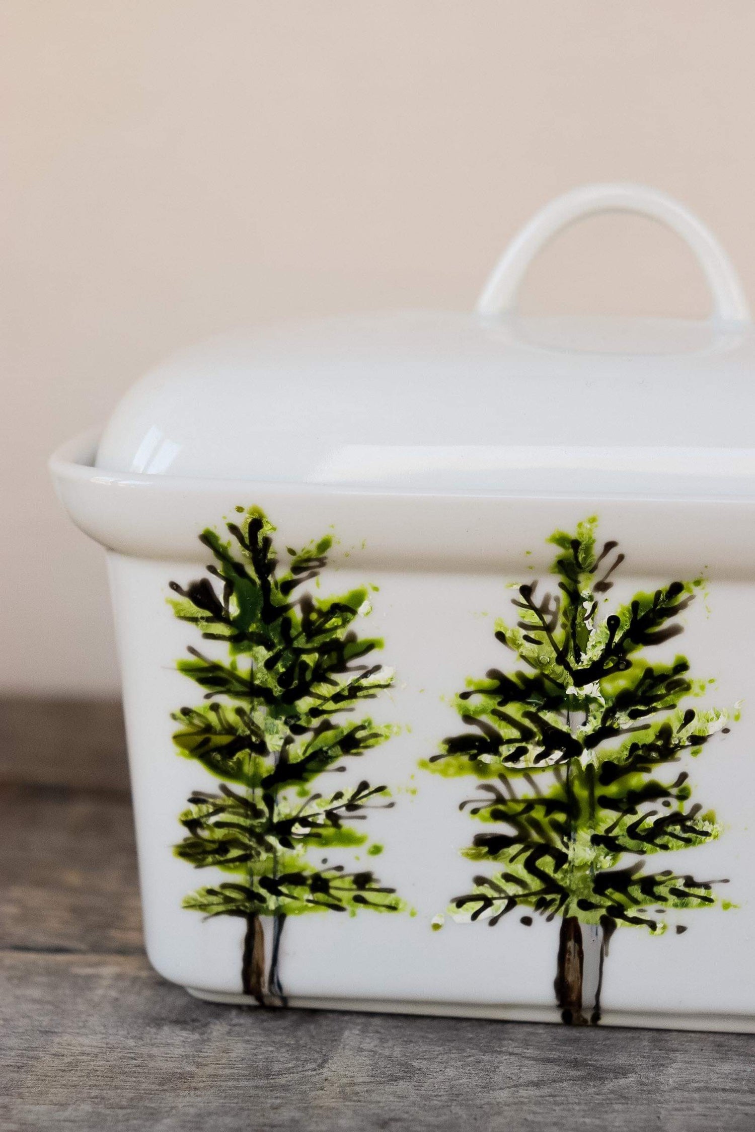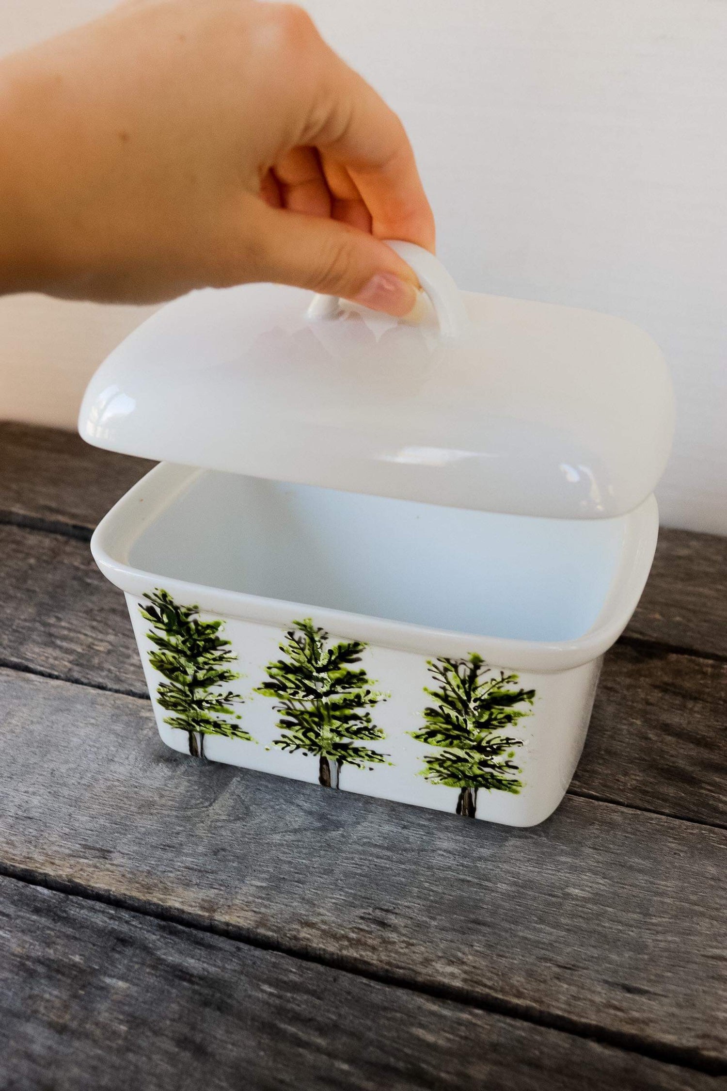 Rustic Boréale design butter dish hand painted by Pero.
