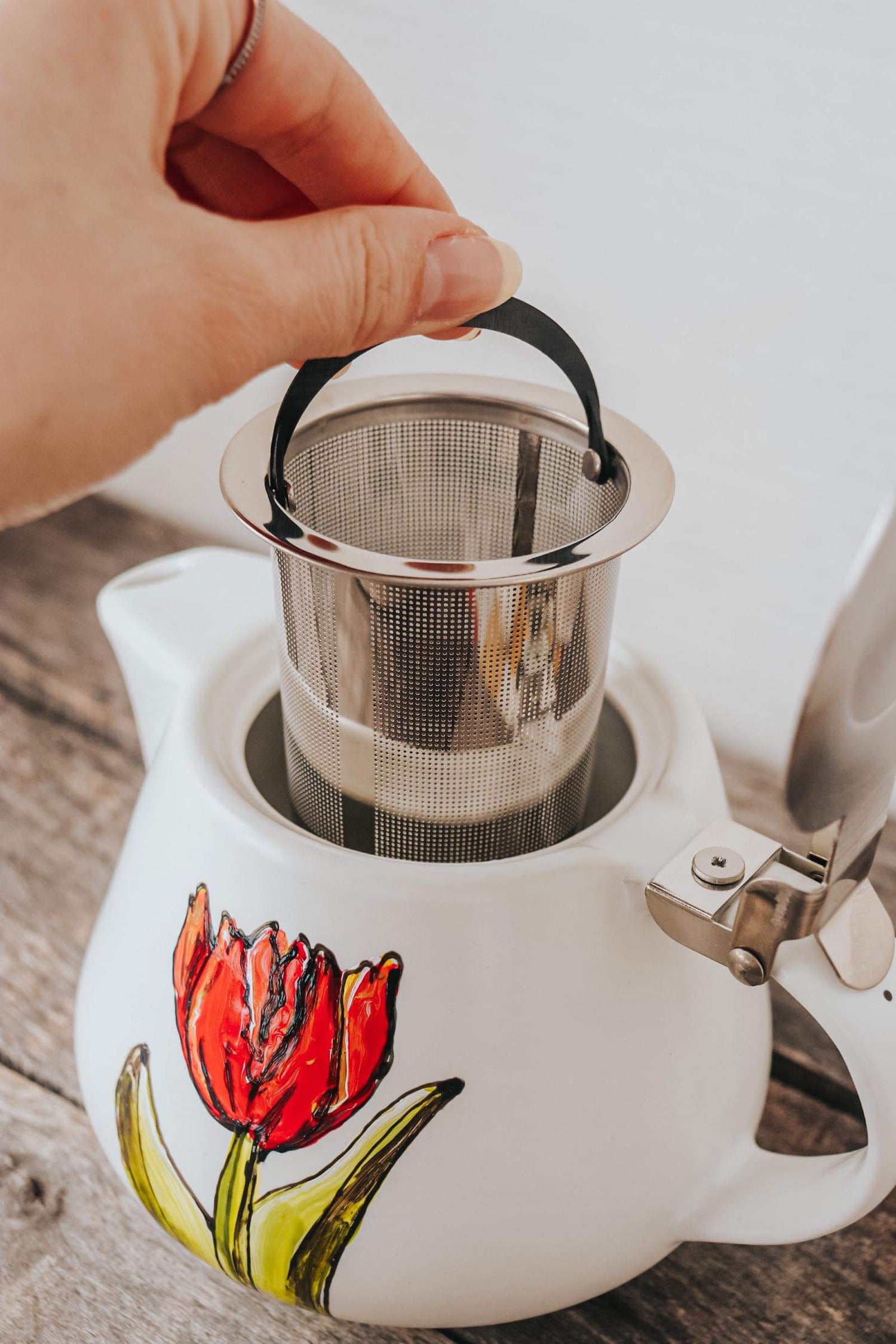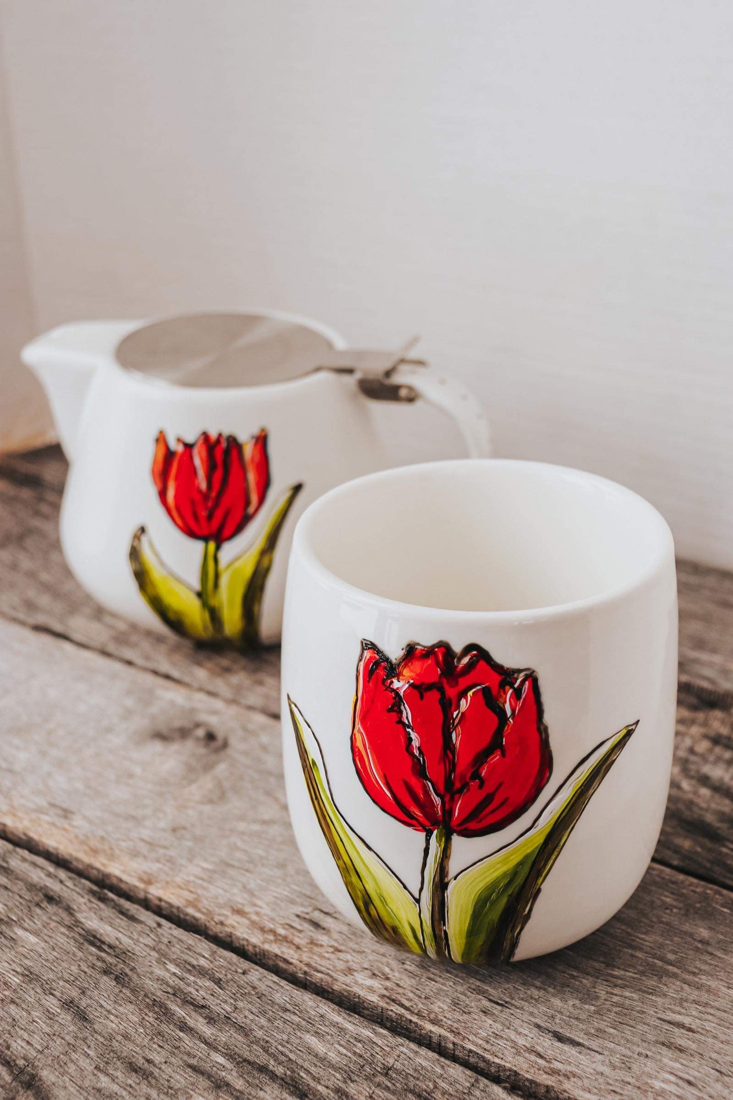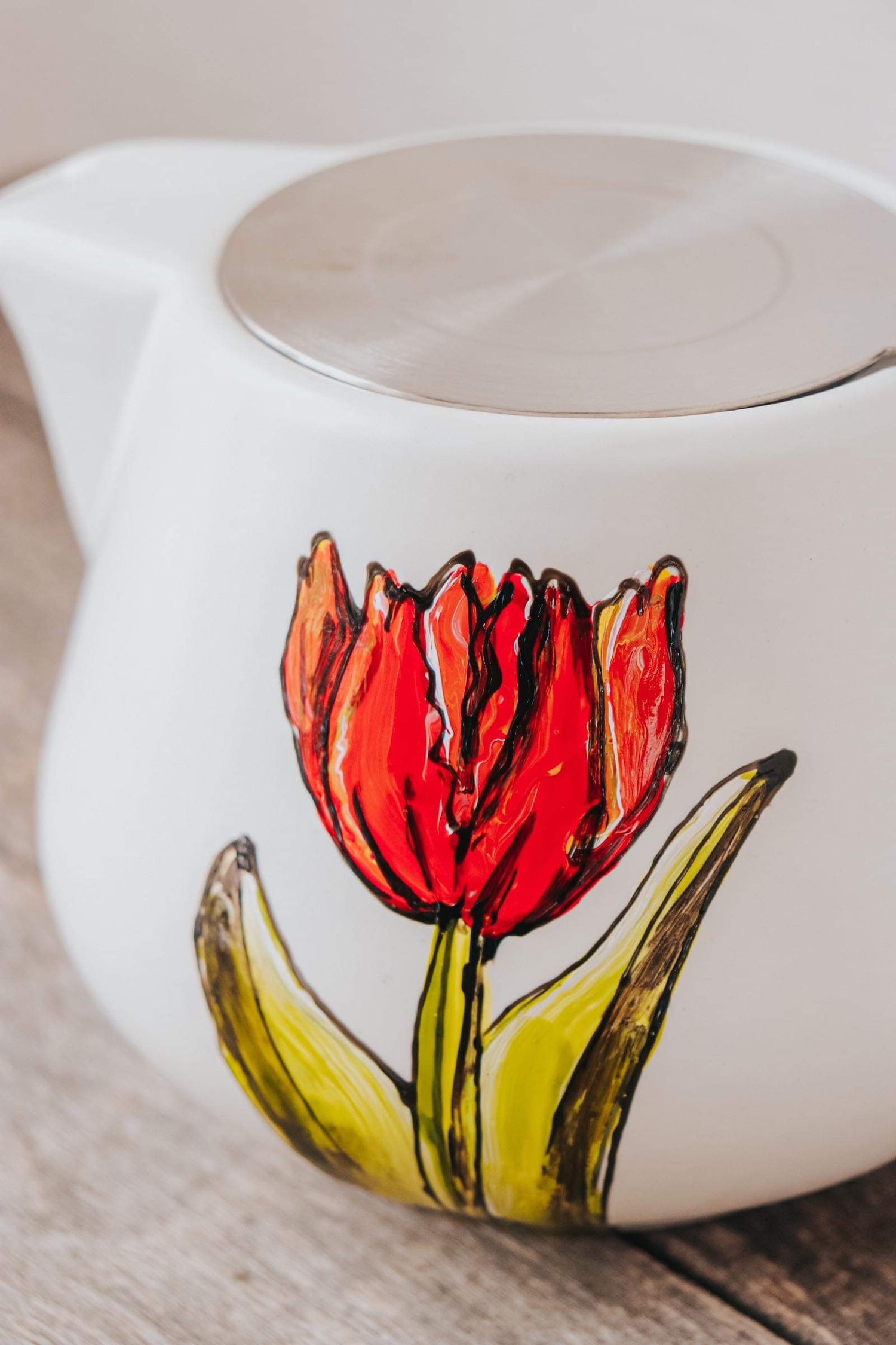théière dessin tulipe peinte à la main théière avec infuseur peinte à la main par Pero