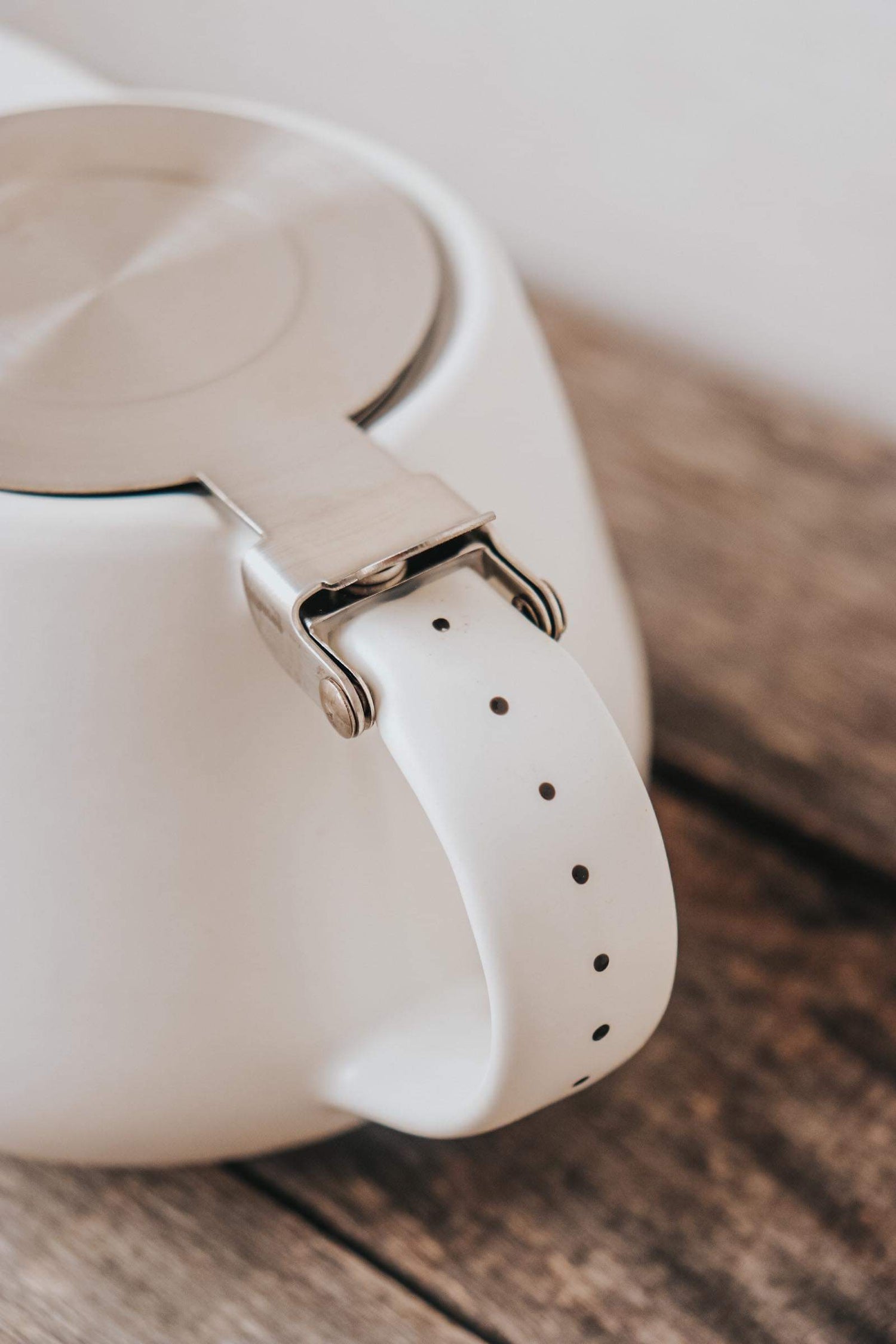 The detachable mesh infuser allows the tea to brew naturally and retains the leaves or bags for easy serving.