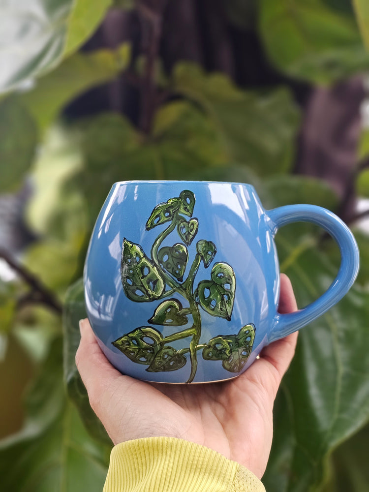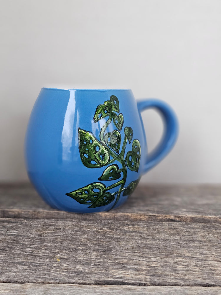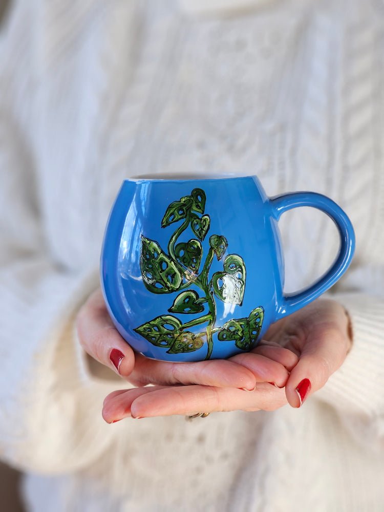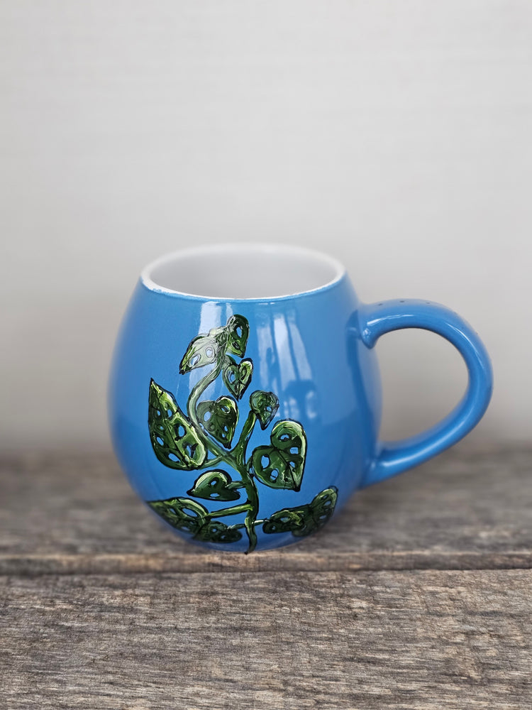 Blue round mug, for the best coffee, tea, hot chocolate, find a hand-painted design from the Botanique collection.