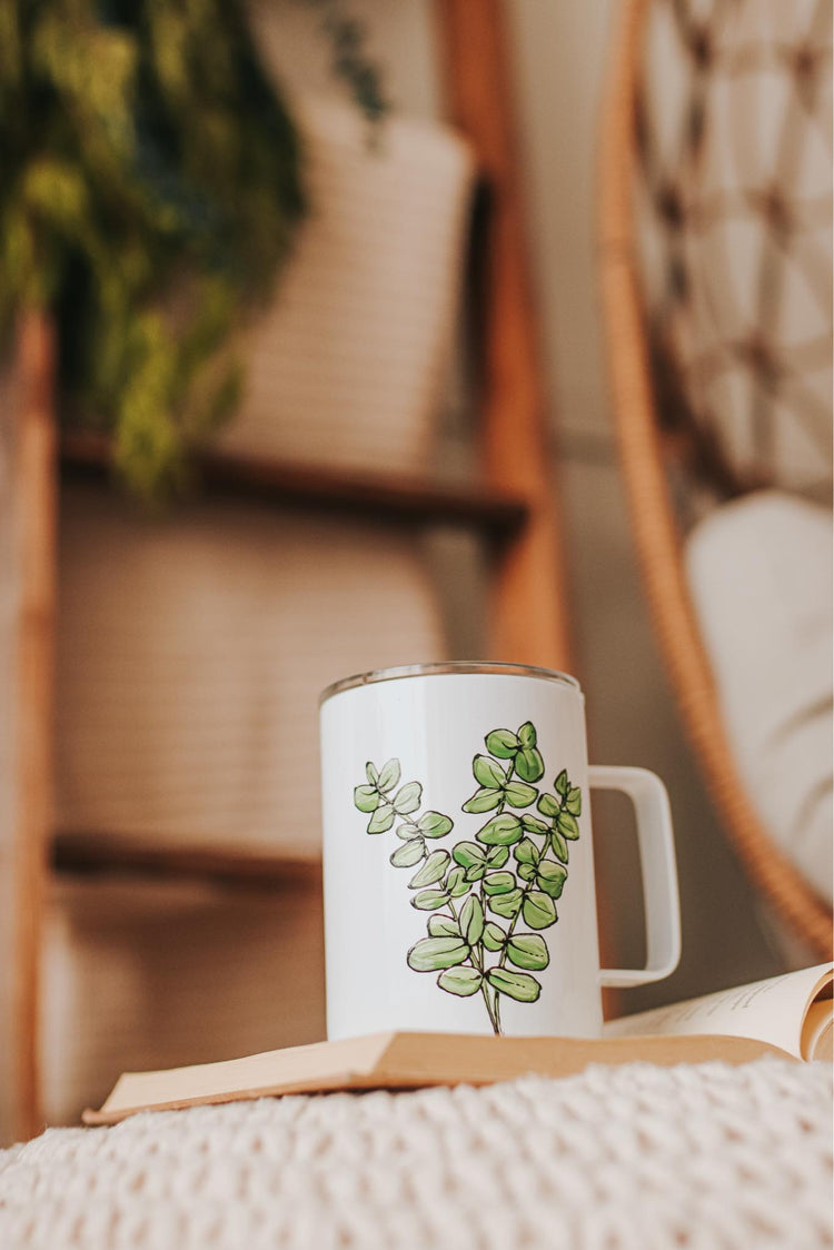 Its Eucalyptus collection design is perfect for enjoying your favorite coffee, tea or hot chocolate.
