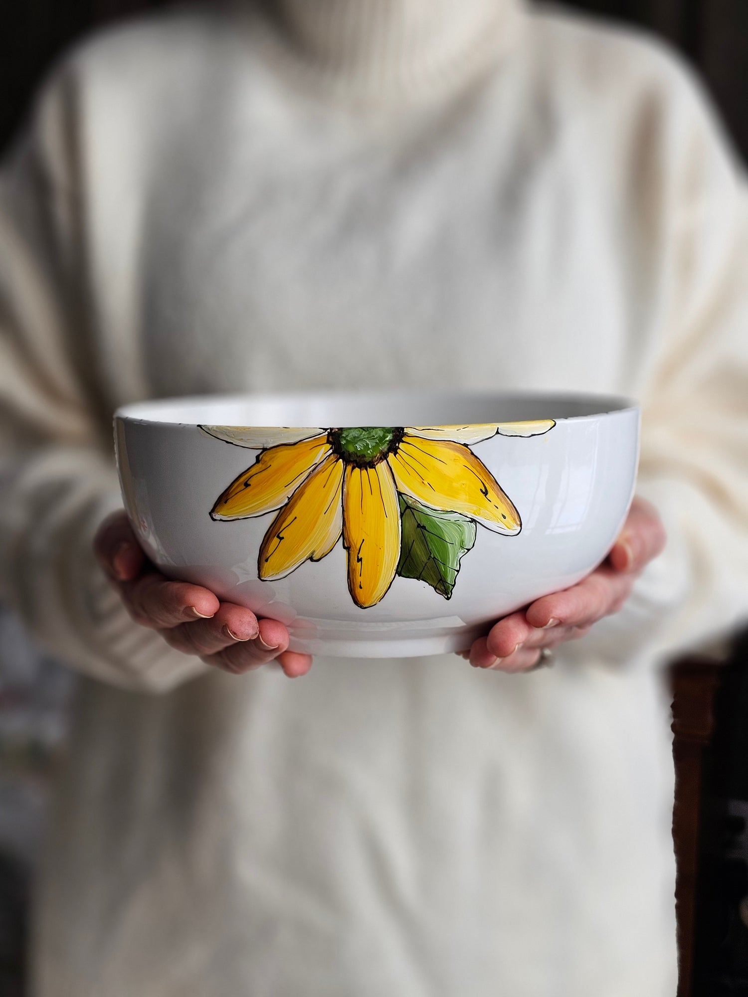 Ce bol de service élégant ajoute une touche de couleur à votre table. La fleur jaune est peinte à l'intérieur et à l'extérieur du bol, et donc visible sous tous les angles.