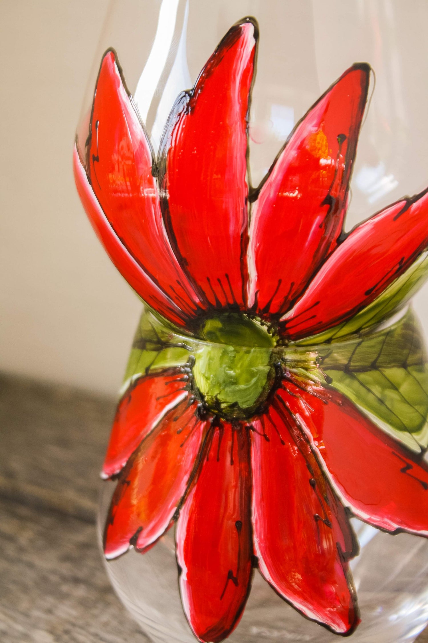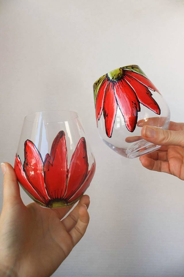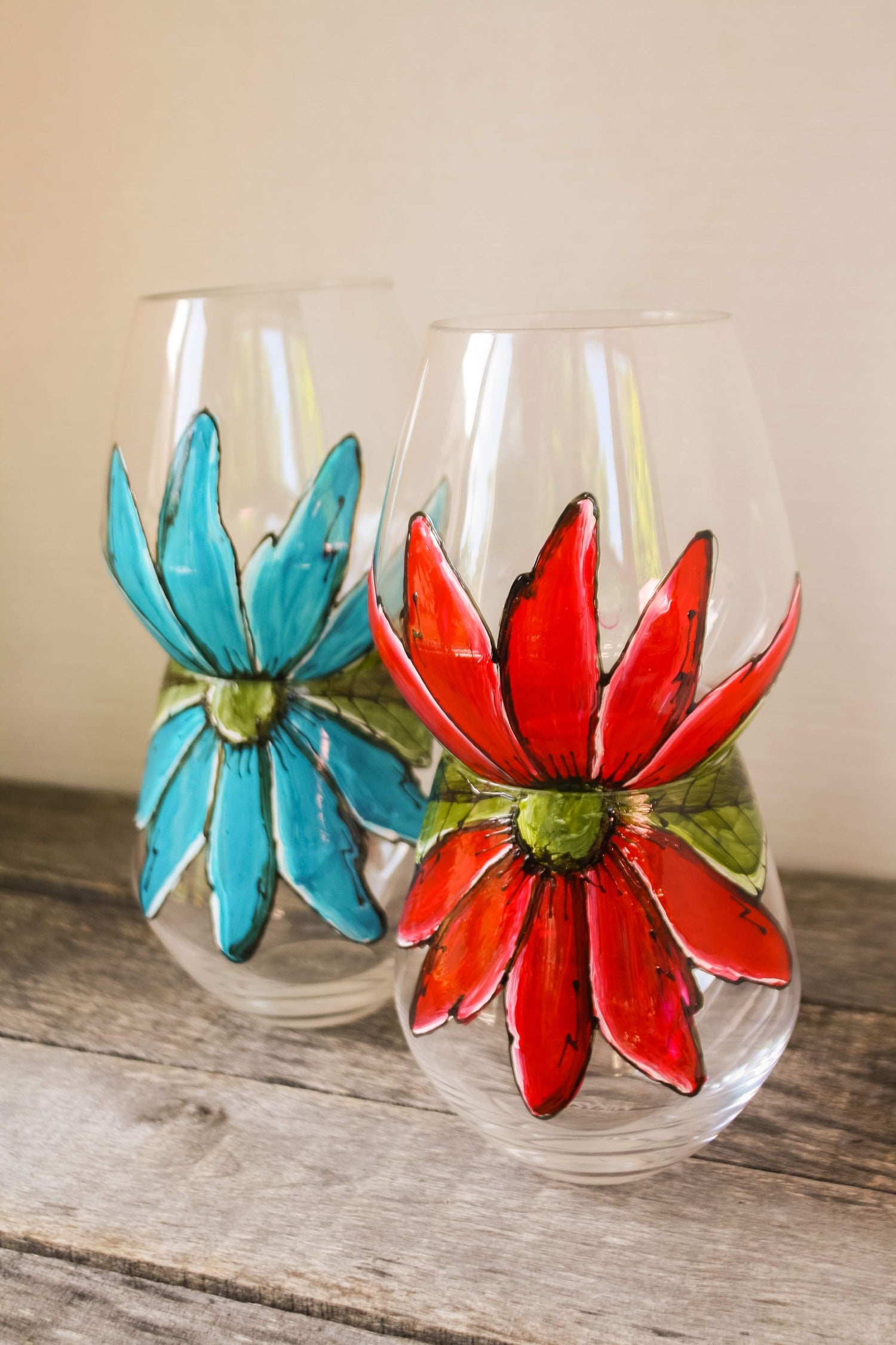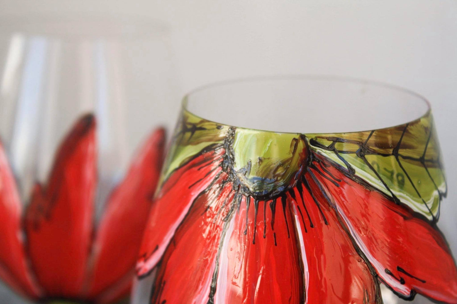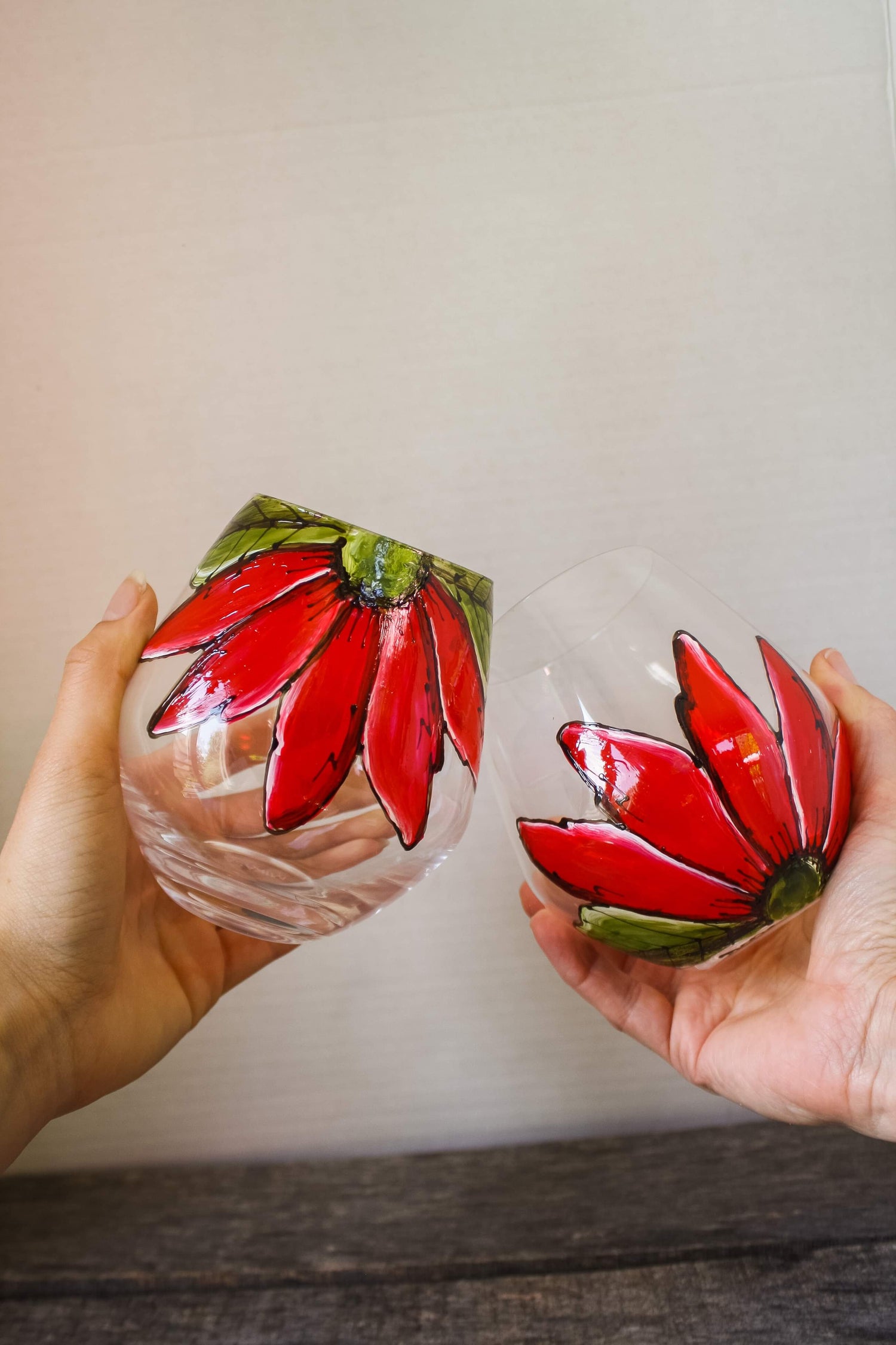 Cet ensemble de verres sans pied est unique et coloré design de 2 demies fleurs rouges!