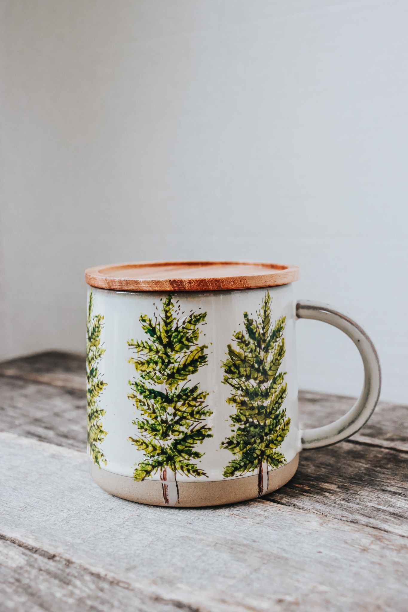 Quel bonheur vous aurez à savourez votre breuvage réconfortant dans une tasse aussi colorée. Cette tasse est en grès blanc lustré avec couvercle en acacia.